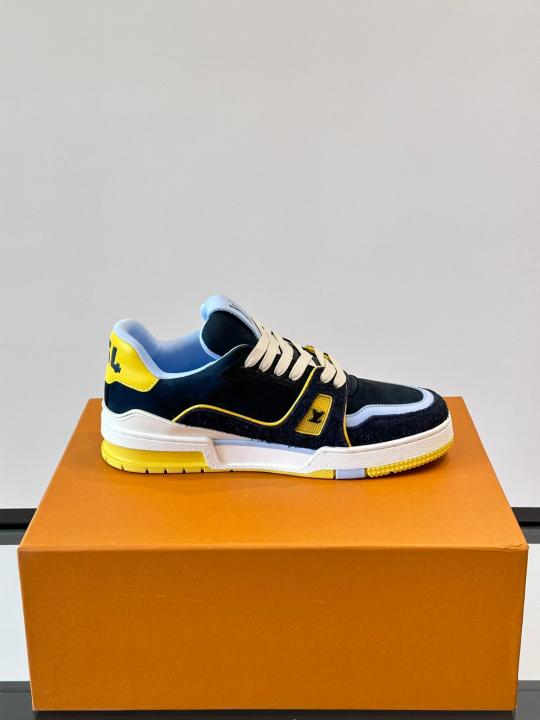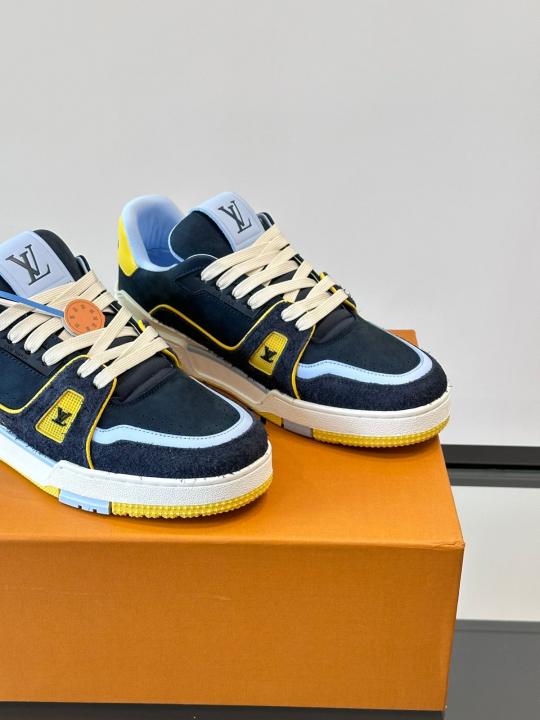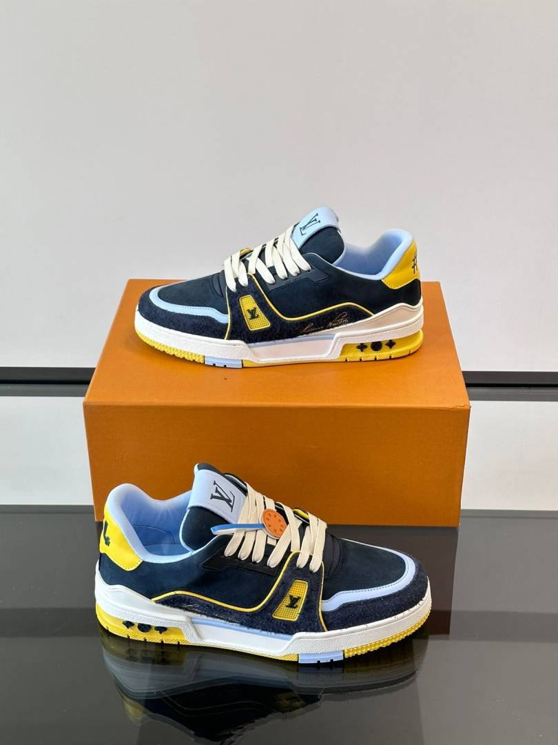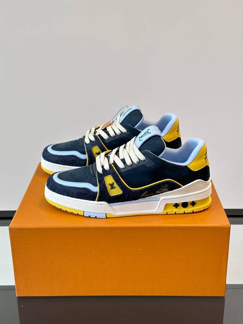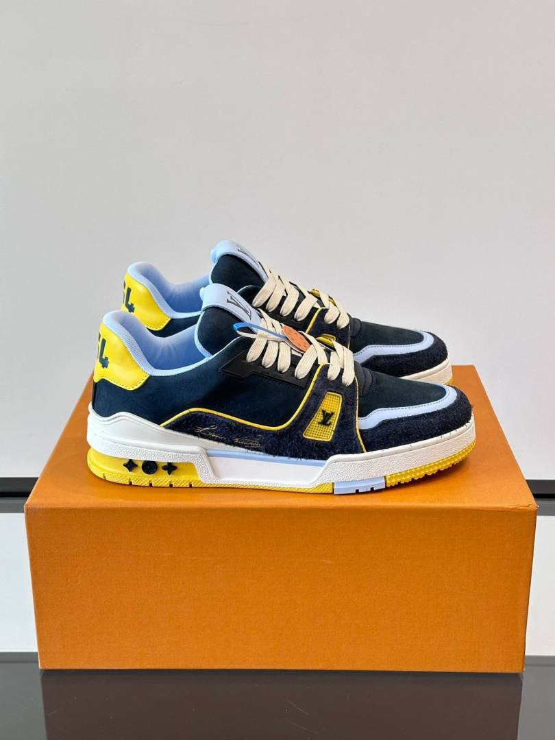 Louiis Vuittton Lv Trainer Blue Calf Leather Double Box Sneaker Made In Italy